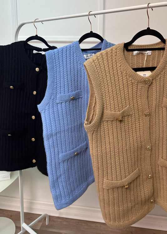 KNITTED VEST WITH GOLD BUTTONS N